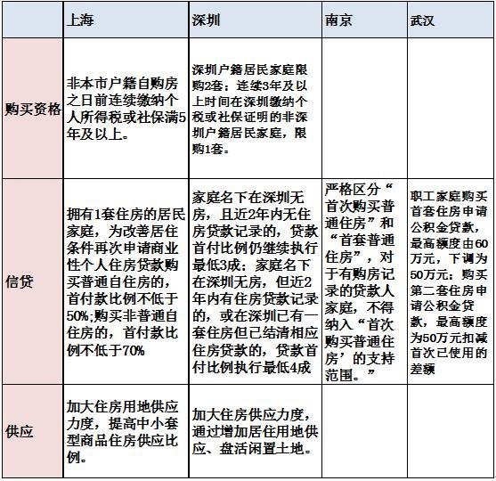 從四個(gè)城市出臺(tái)的樓市新政可以看出,大部分新政都是集中在買房門檻和信貸政策上面做文章。上海和深圳皆對(duì)本地的買房門檻提高了限制。上海非本市戶籍自購(gòu)房之日前連續(xù)繳納個(gè)人所得稅或社保滿5年及以上;深圳戶籍居民家庭限購(gòu)2套;連續(xù)3年及以上時(shí)間在深圳繳納個(gè)稅或社保證明的非深圳戶籍居民家庭,限購(gòu)1套。