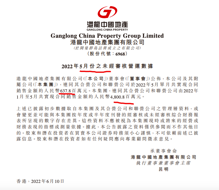 另,2022年1-5月份,港龍中國(guó)實(shí)現(xiàn)合同銷售金額約48元,按年同比下跌約66.1%。