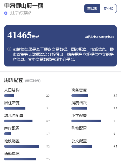 此外,該項目周邊的公交配套、消費檔次、商務(wù)密度等的得分也均在3.5分以上。每經(jīng)品房小程序綜合以上各維度測評顯示,中海御山府未來5年的房價漲幅將跑平江寧區(qū)的平均漲幅,將跑贏全國平均漲幅。